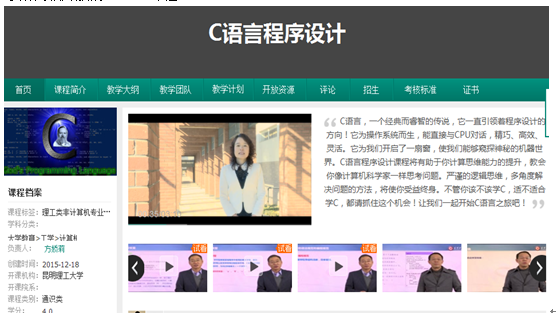 在学校将慕课(MOOC)建设列入“十三五”建设目标及本科教学工作重点的背景下,教务处加大了我校MOOC建设的投入和管理力度,于2014年11月启动了“昆明理工大学精品资源共享课”的建设。其中《C语言程序设计》MOOC共享课程经过计算中心教学团队的努力,于近期通过了“东西部高校课程共享联盟”评审,并在共享联盟运营商——智慧树网站上成功上线(http://online.zhihuishu.com/CreateCourse/course/home/2003406),成为我校首门上线“东西部高校课程共享联盟”的课程。“东西部高校课程共享联盟”成立于2013年10月,其会员包括“985工程”单位24所,“211工程”单位57所,我校是该联盟第一批成员单位。目前已有2000余所高校使用“东西部高校课程共享联盟”提供的优质共享课程资源,惠及200余万大学生。《C语言程序设计》课程上线“东西部高校课程共享联盟”,有利于扩大我校及我校优秀课程和教师在国内的知名度和影响力,将极大促进我校优质课程资源的开发与共享,提高我校人才培养质量。